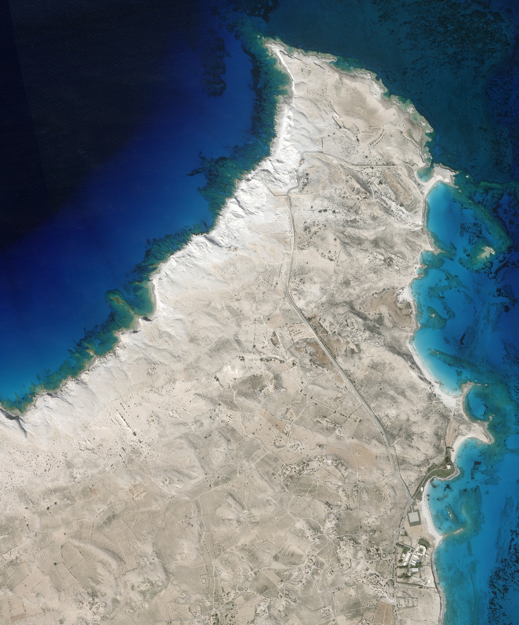 埃及拉斯埃尔赫克马半岛尖端的卫星图像,日期为3月14日。
