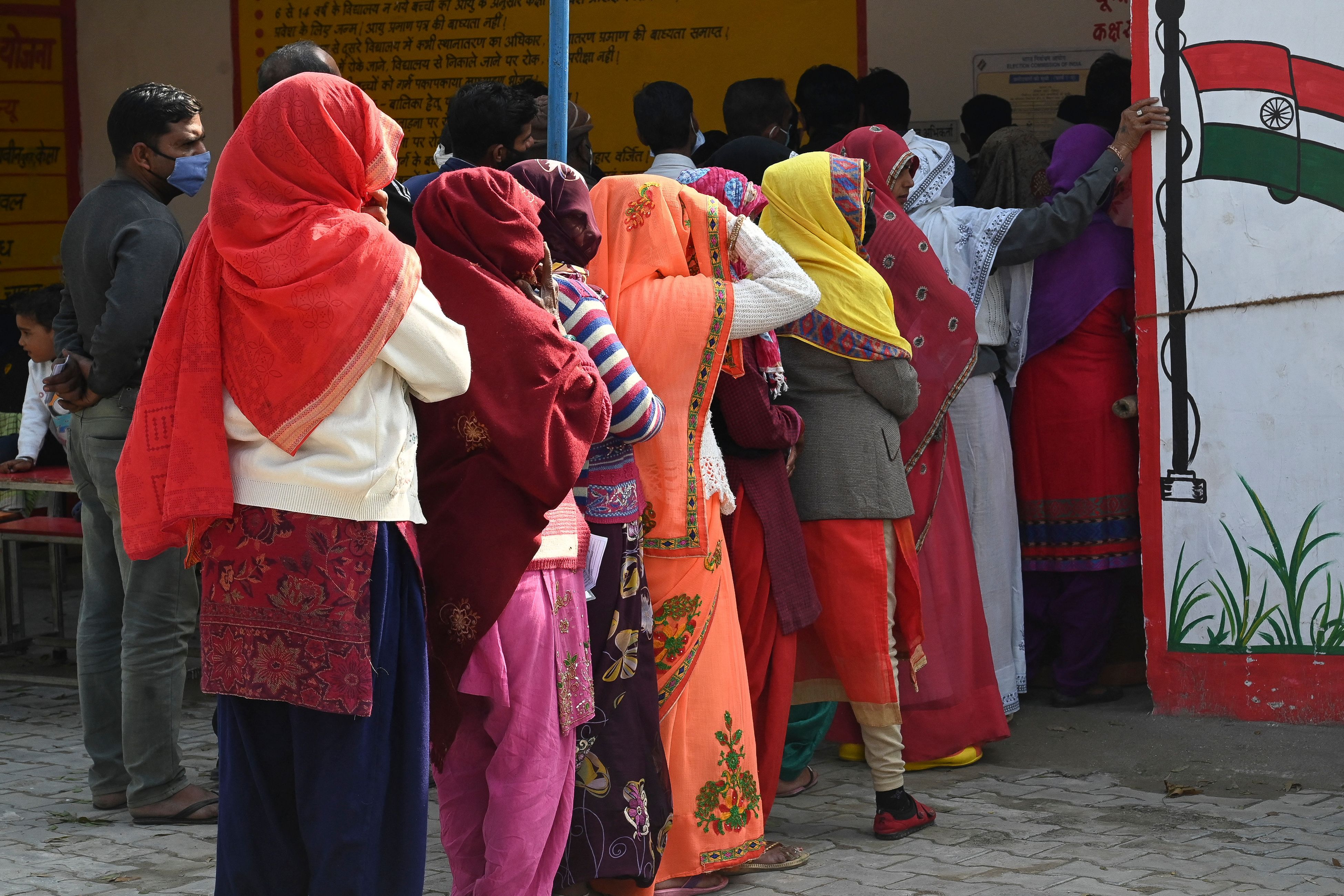 选民排队投票。摄影师:PRAKASH SINGH/AFP印度将于4月19日起连续六周举行大选,现任总理纳伦德拉·莫迪竞选第三个任期,受到强劲经济和印度教支持者的支持。