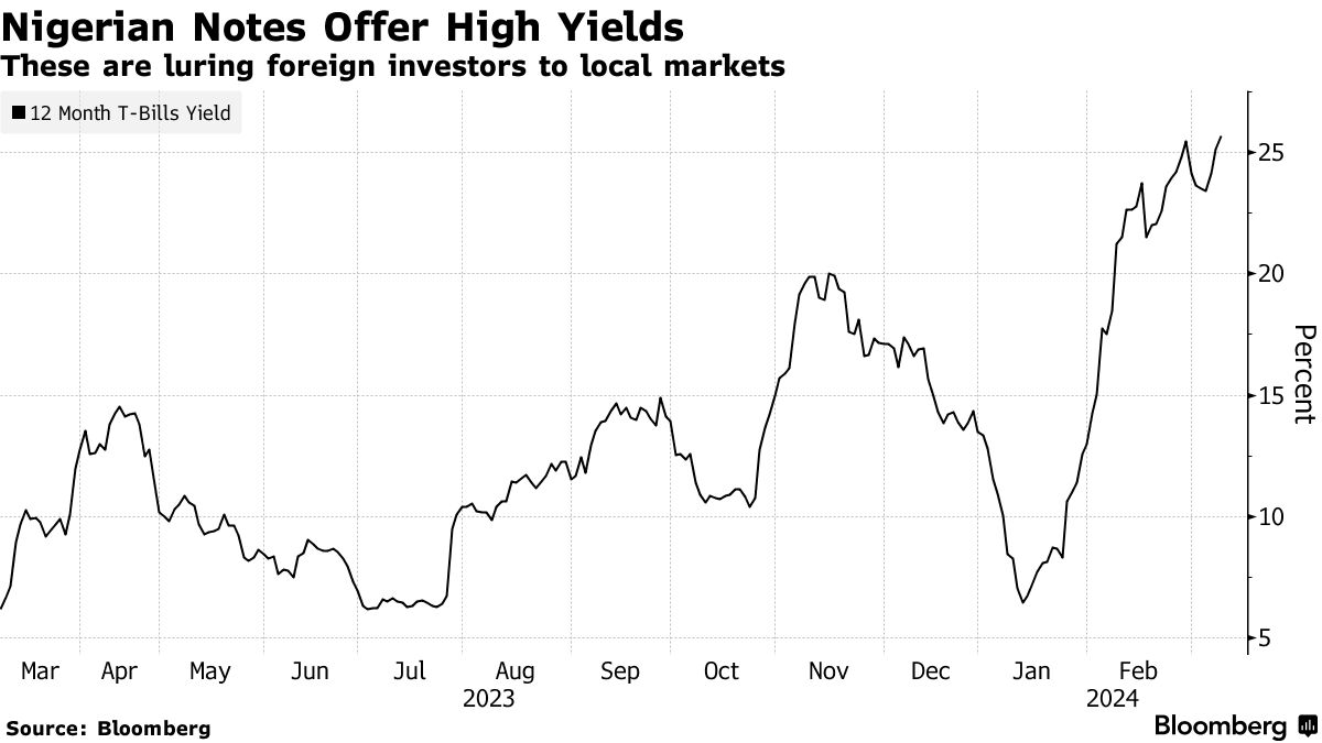 罗伯逊表示,自肯尼亚和埃及提高基准利率以来,对本币债券的需求激增。他表示,一旦尼日利亚央行完成其加息周期,该国可能也会看到类似的兴趣。