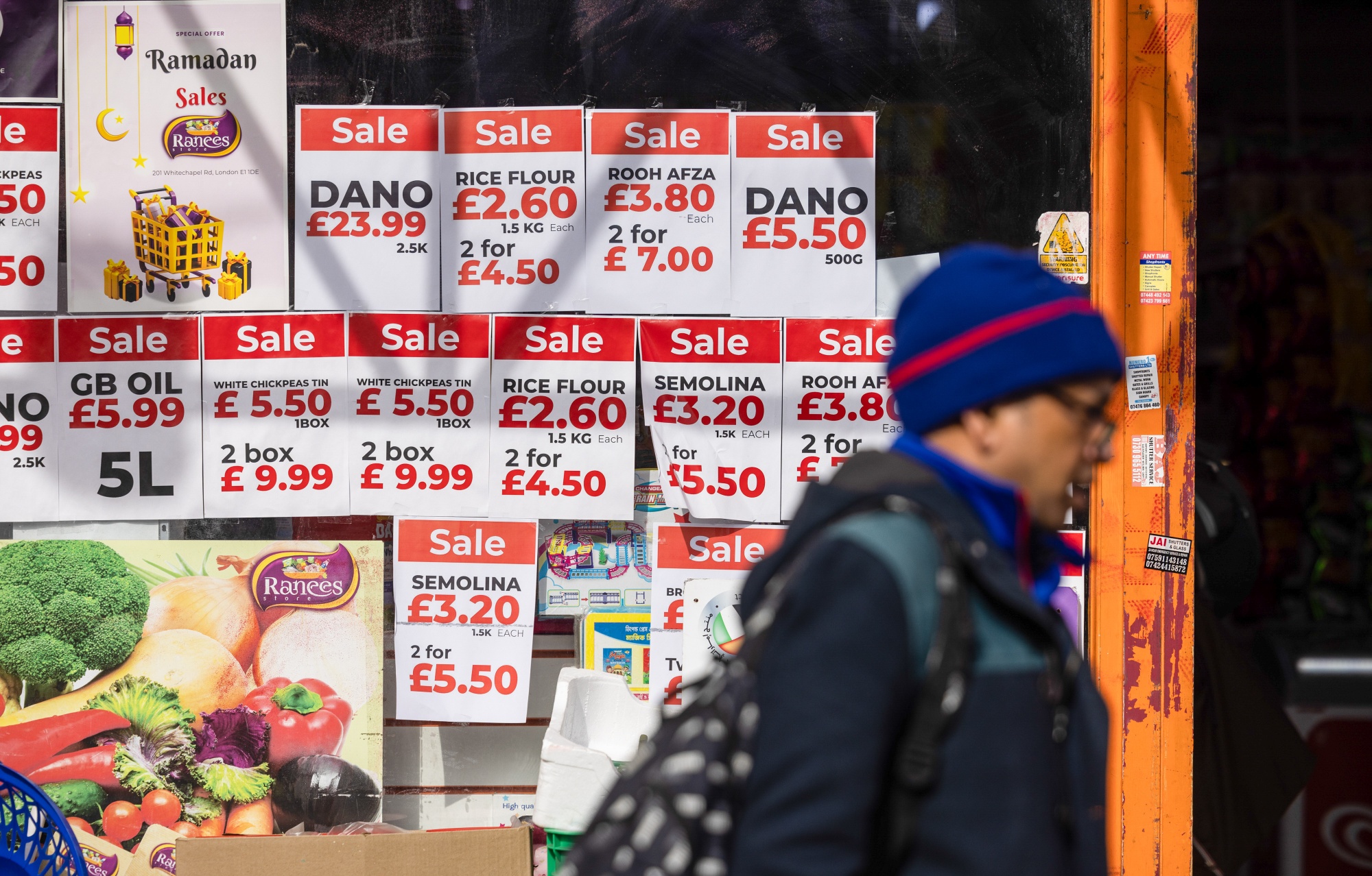 伦敦汉默斯密区食品店外的标志。摄影师:克里斯·拉特克利夫/彭博社**重大决定:**国家大选的日期仍然不明确,因为首相里希·苏纳克希望选择最佳经济消息的时机。尽管最近出现了一些发展迹象,但保守党面临着导致1997年保守党失败的经济困境,伊琳娜·安格尔报道。