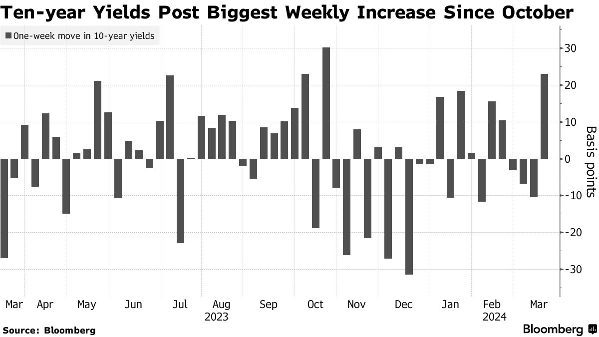 近期国债收益率飙升,正处于创下今年新高的边缘,因为数据持续指向持续的通胀,这导致交易者推迟了美国货币宽松的时间表。