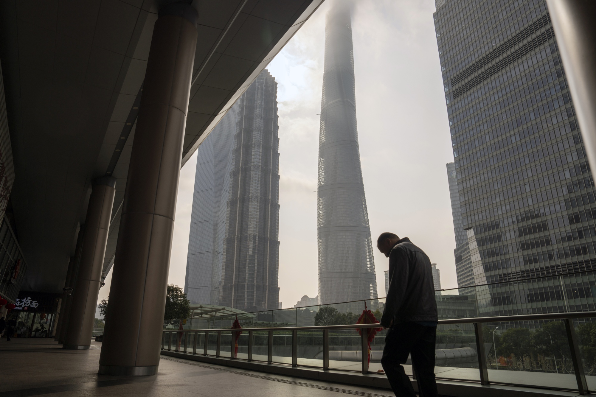 浦东陆家嘴金融区建筑前的行人。