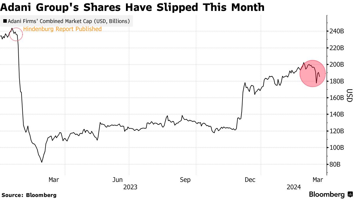 阿达尼庞大的帝国在去年初受到做空者兴登堡研究的指控,称该集团操纵股价并犯下会计欺诈。该集团对此指控坚决否认,股价也在最初的暴跌后大幅回升。