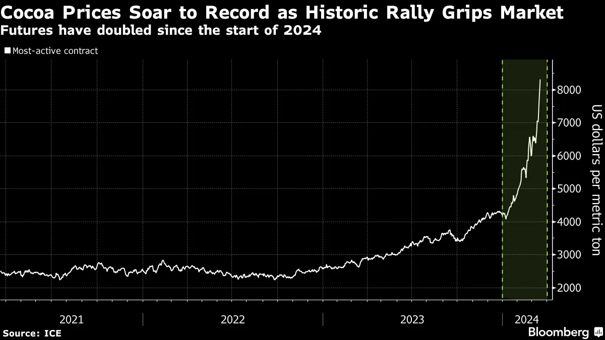随着复活节临近,可可价格在2024年初翻倍 - 彭博社