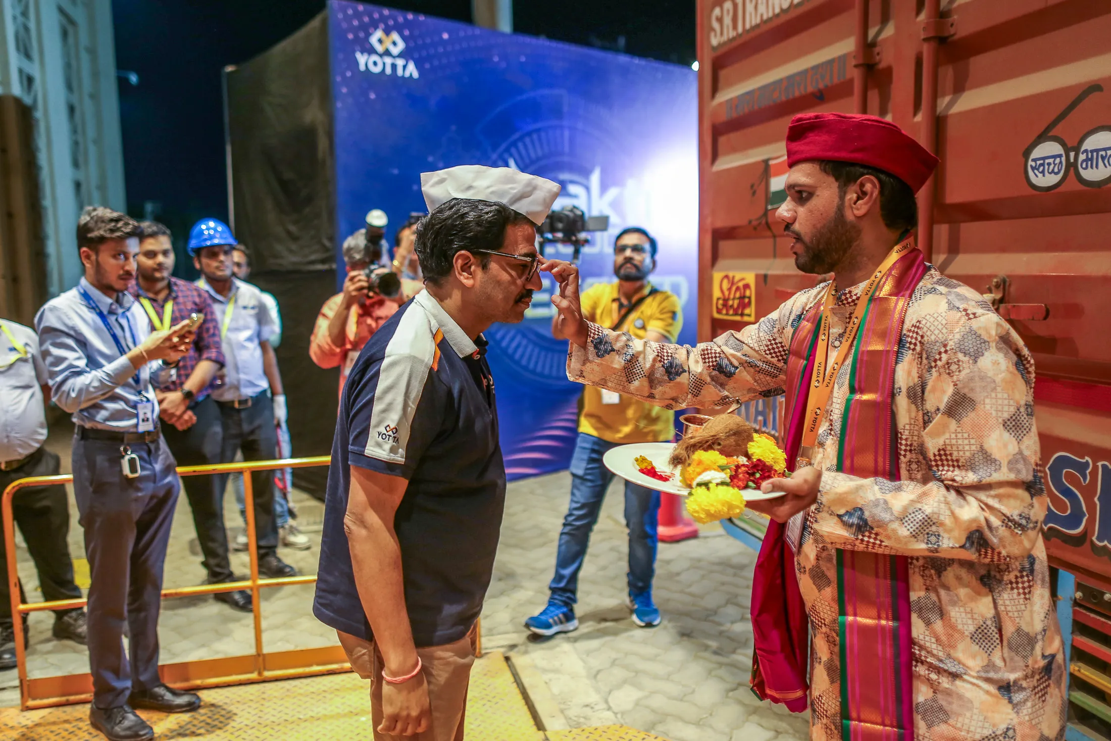 对Gupta来说,这次送货是一种宗教体验,字面上来说。一个祭司用红色朱砂印记和黄色菊花串装饰了箱子,古老的梵语圣歌在夜空中回荡。一架携带相机的无人机记录下Gupta象征性地在卡车附近的地板上砸碎椰子的瞬间。“这是一个梦想时刻,”他在爆炸的派对炮中说道。