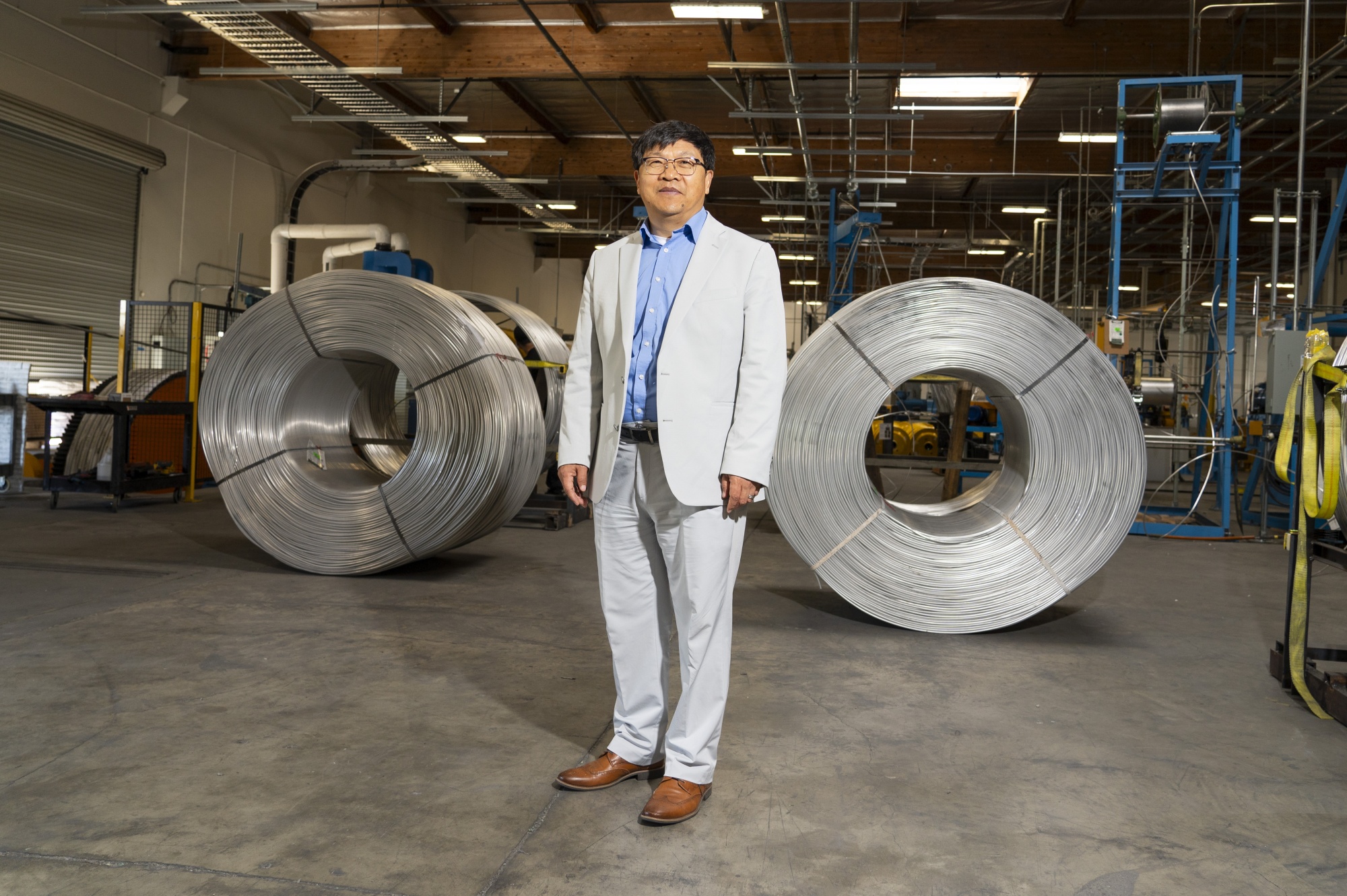 TS Conductor Corp.首席执行官杰森·黄在加利福尼亚州亨廷顿海滩的公司生产设施。