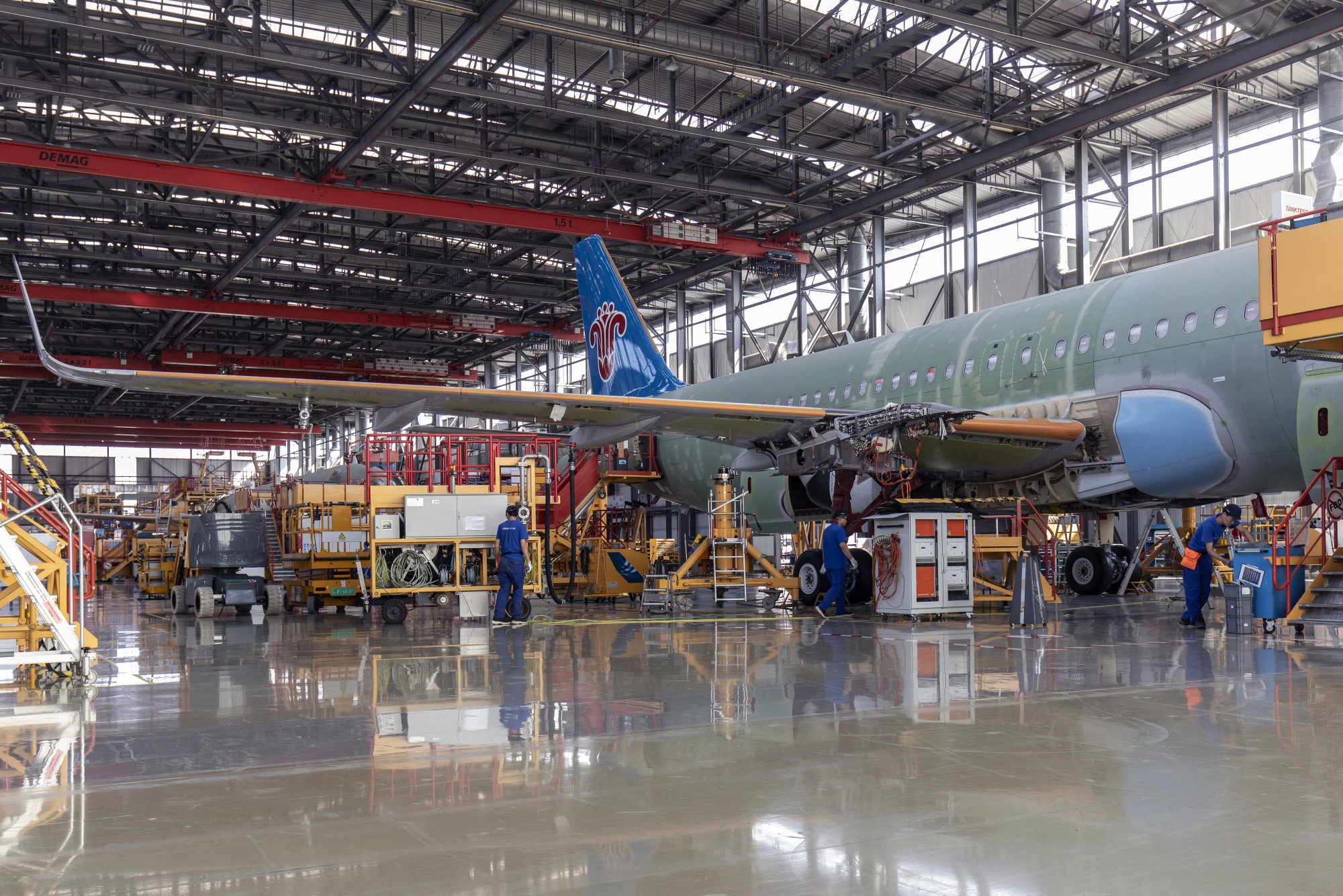 空客为中国南方航空在中国天津的飞机组装,2023年6月。