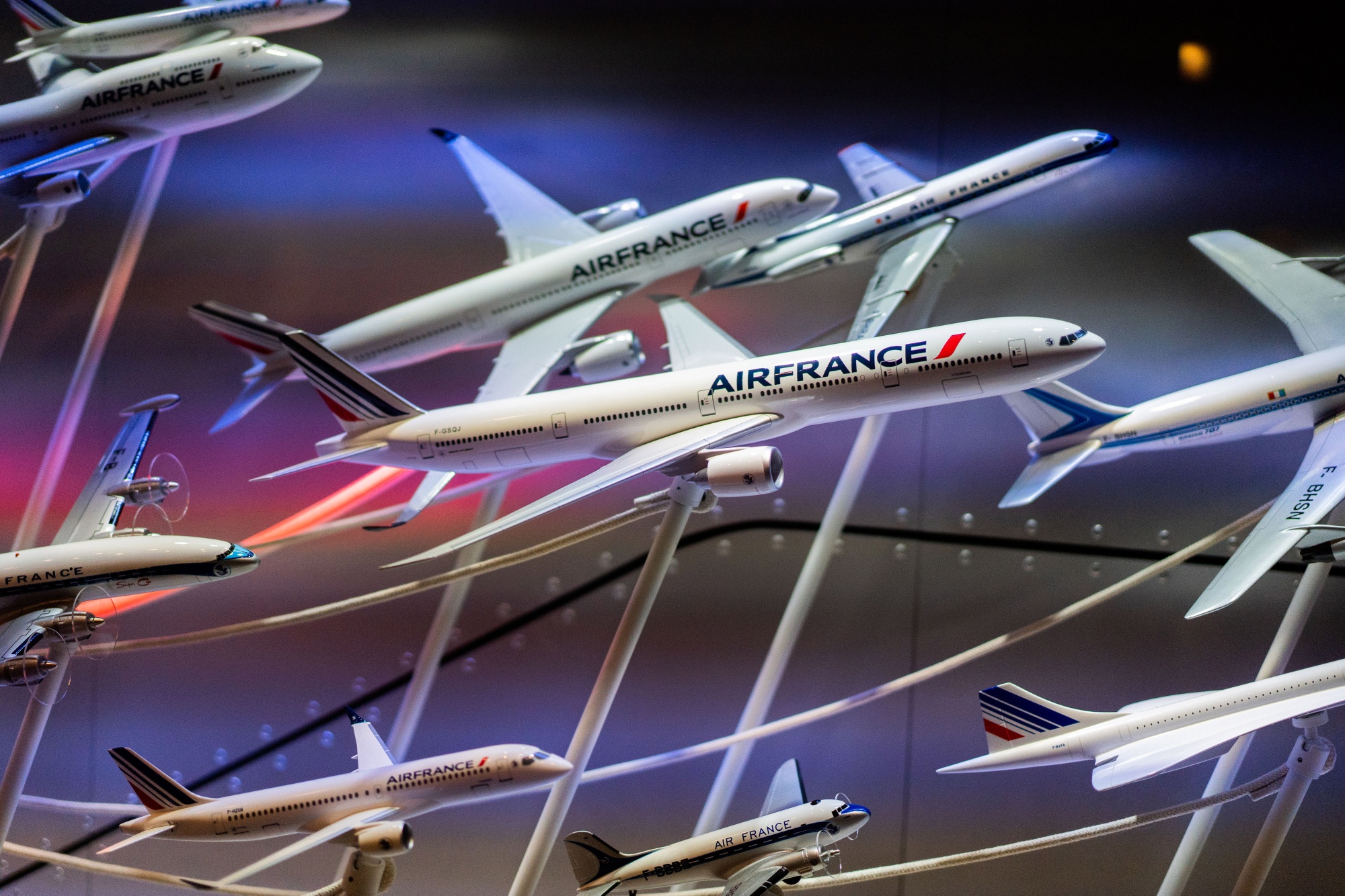 在巴黎举行的活动上展示的模型客机,以庆祝法航90周年。