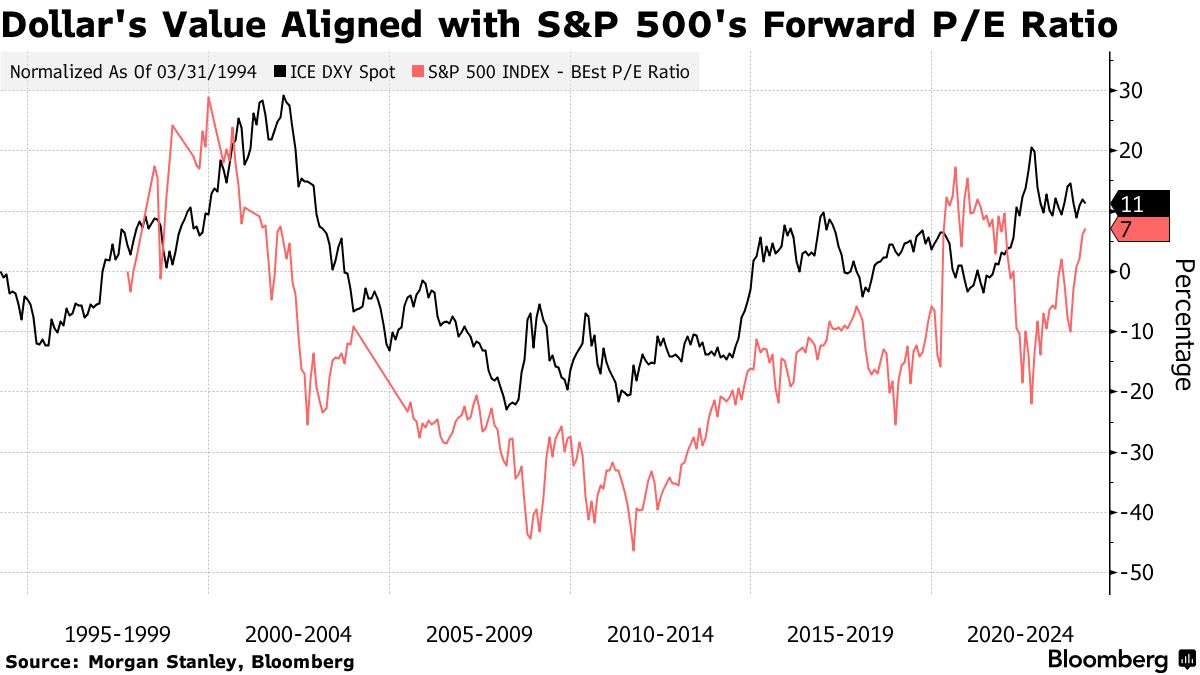 美元的更广泛下行趋势将通过盈利倍数流向美国股票,而盈利倍数的扩张是市场近期涨幅的主要原因。