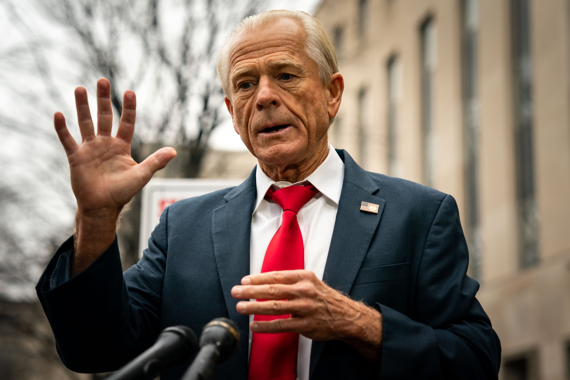 彼得·纳瓦罗在华盛顿特区联邦法院接受判决时与媒体成员交谈,时间是1月25日。