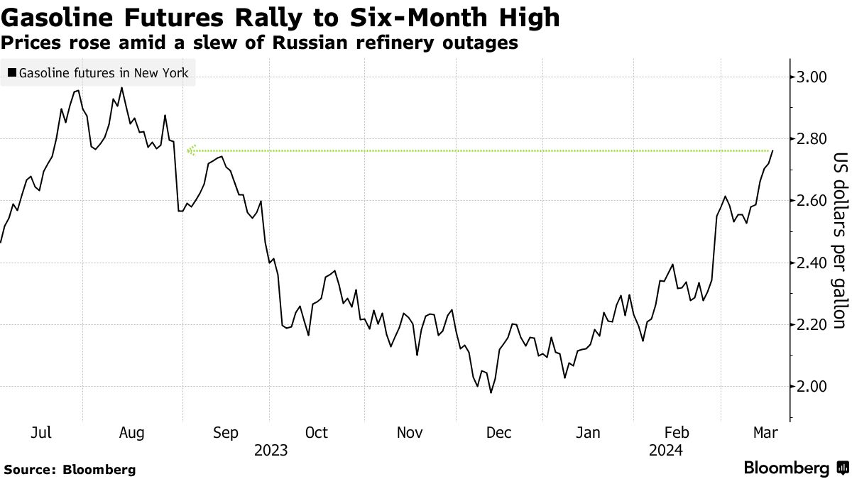 摄影师:斯蒂芬·马图伦/盖蒂图片社北美美国汽油期货已达到六个月来的最高点,因为俄罗斯炼油厂的中断和美国燃料库存的减少加剧了夏季驾驶月份的供应担忧。