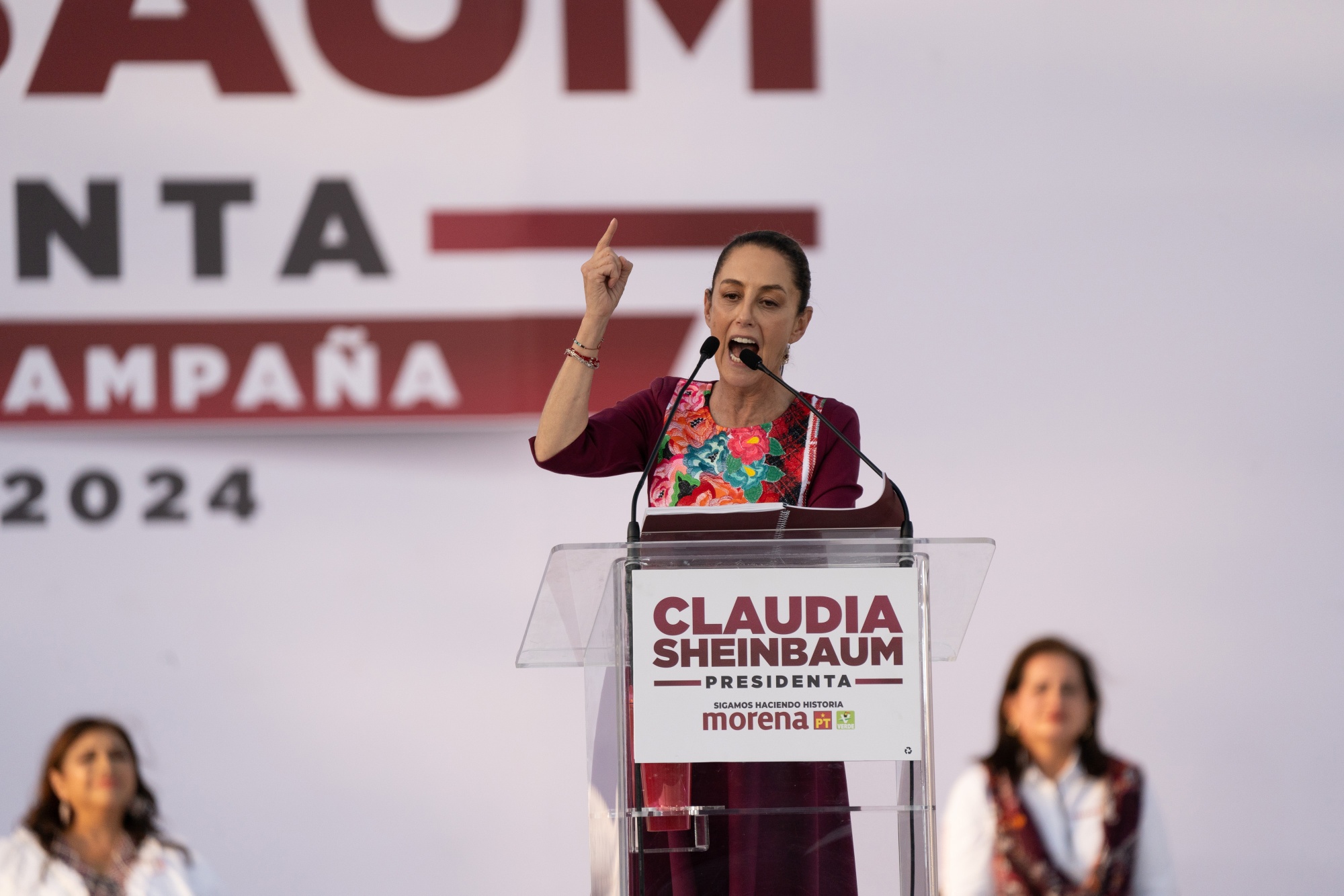 墨西哥城前市长、莫雷纳党总统候选人克劳迪娅·谢因鲍姆于2024年3月1日星期五在墨西哥城的竞选启动活动中发言。