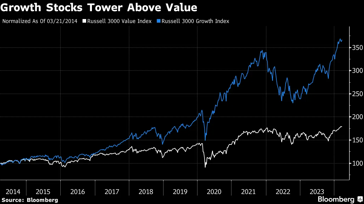 在过去十年中,成长股(因其收益增长而被挑选,对其估值关注较少)的表现加深了对价值指数的怀疑。专注于价值将使得很难挑选出当前一代的显著赢家。在美国,价值股在失去的十年中差距极大,如下图所示的罗素3000指数所示。然而,多年的数据证据表明,便宜的股票在长期内持续表现优于其他股票:
