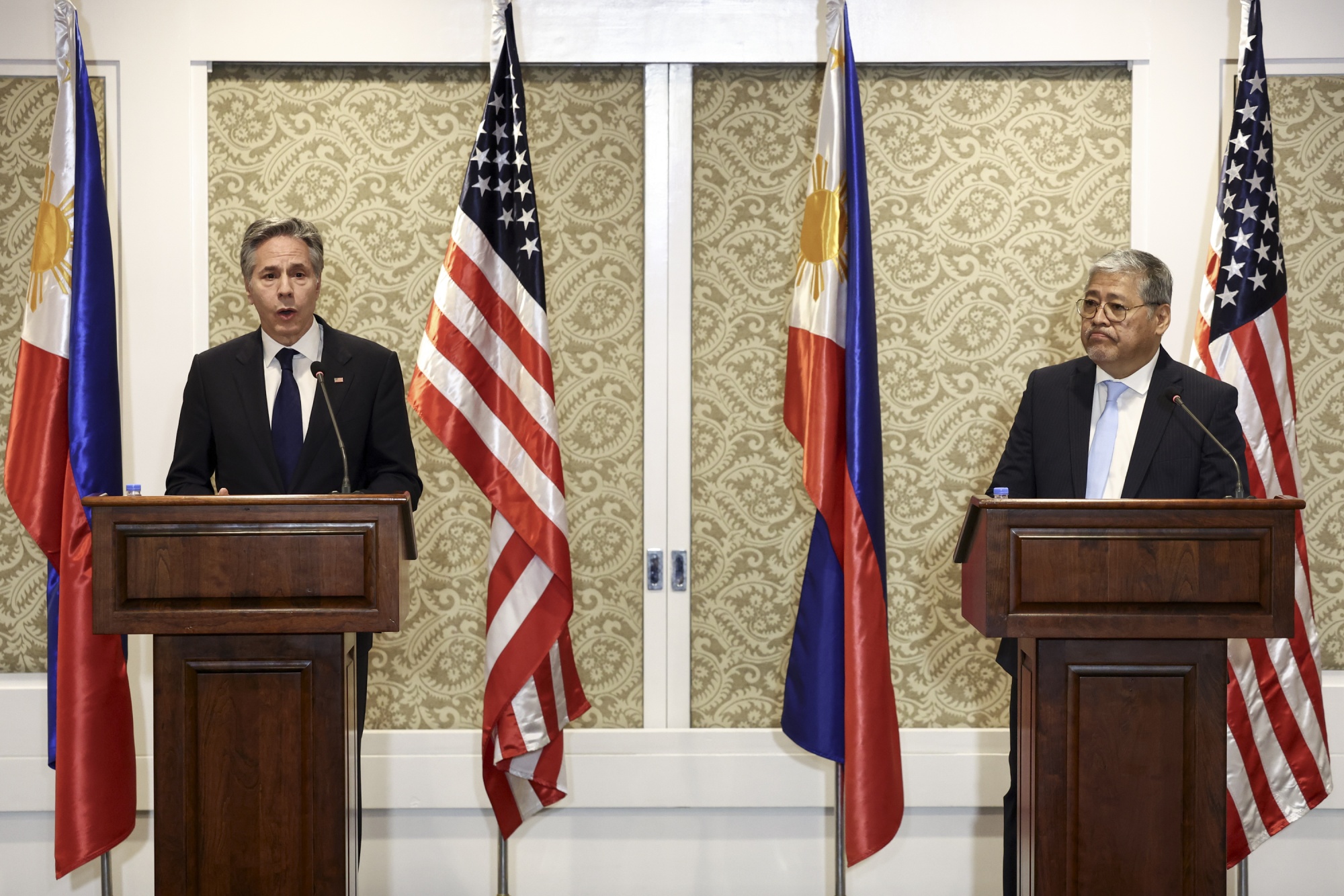 安东尼·布林肯(左)与恩里克·马纳洛于3月19日在马尼拉。摄影师:埃洛伊萨·洛佩斯/池/Getty Images