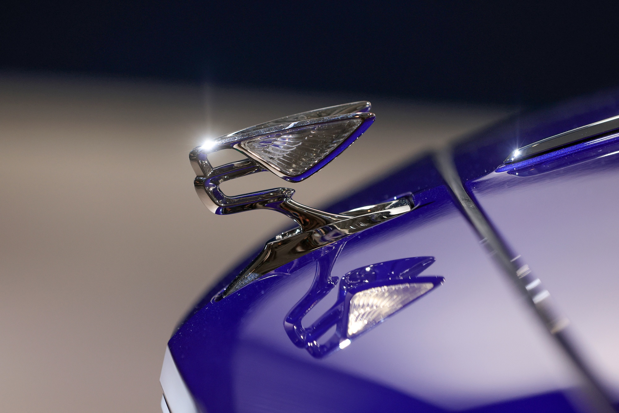 一只翅膀的B标志在大众汽车去年在柏林的年度会议上的宾利飞驰豪华轿车上。