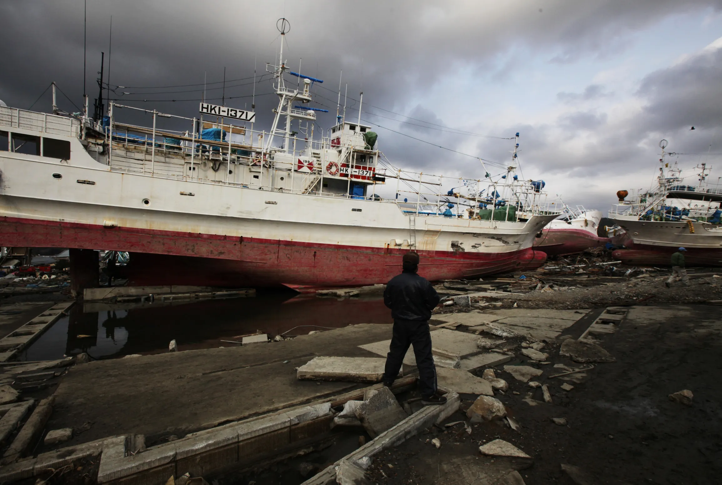 2011年3月11日,日本气仙沼发生地震后,海啸将船只冲上陆地。摄影师:大住智宏/彭博社你的城市准备好应对灾难性地震了吗?:快速了解