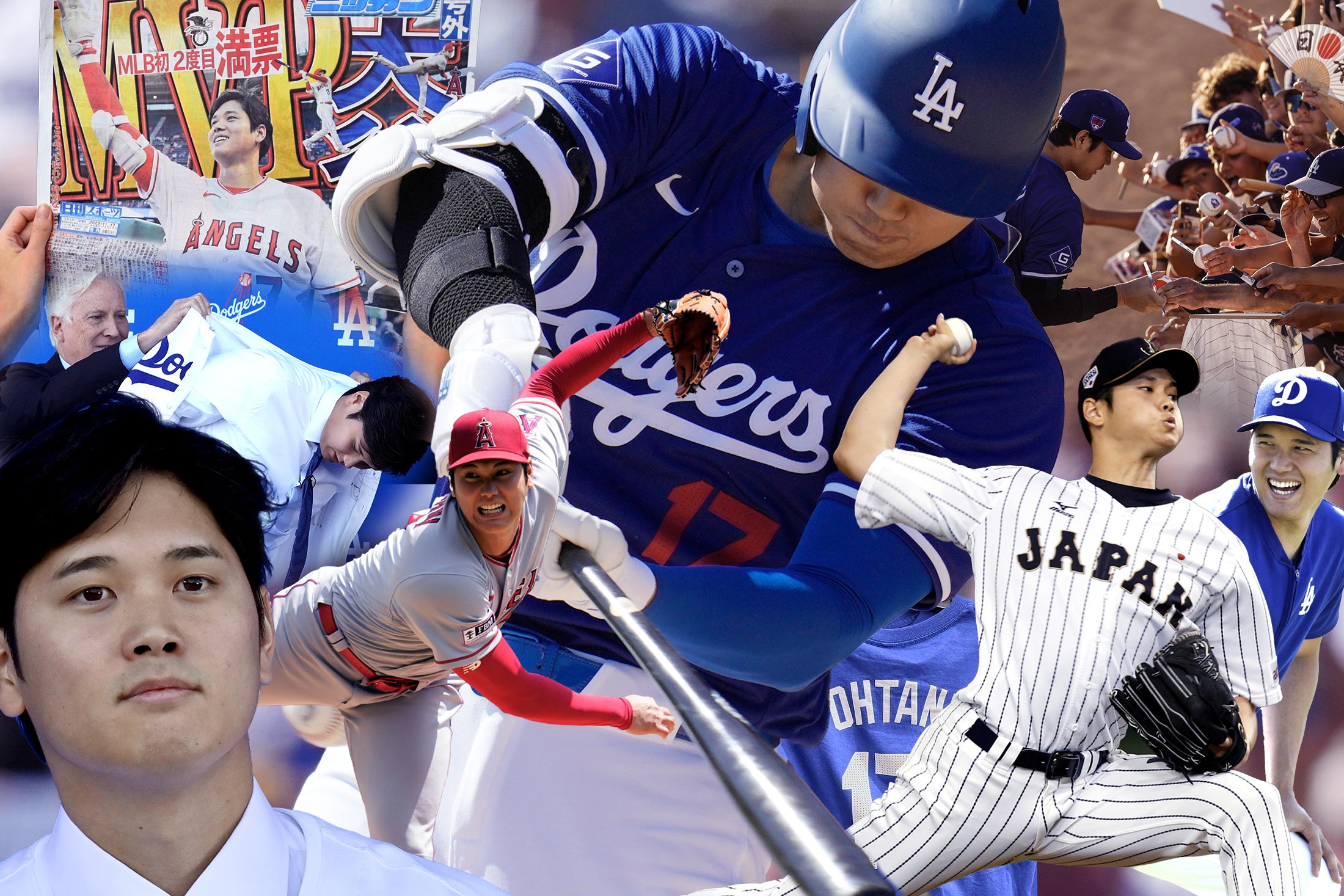 大谷已经是日本最著名的运动员,是一个热爱棒球的国家的骄傲。他的比赛在日本现场直播,他的名字是每日体育新闻的头条常客。然而,在他在美国的职业生涯的前六年里,大谷在他所选择的国家相对默默无闻地奋斗。他性格内向,接受的采访很少,社交媒体上发帖不频繁,并且在一支连续八个赛季失利的球队中(技术上是在安纳海姆,而不是洛杉矶)也没有帮助。然而,当他与道奇队签下了一份为期10年、7亿美元的合同时,他的传奇在12月得以增长。这份合同是团队运动历史上最大的,使大谷的每一个举动都成为了一场盛事。全球数千万观众观看了道奇队欢迎17号球员加入球队的新闻发布会。联盟表示,他的新球衣在在线体育零售商Fanatics的销售速度超过了任何其他球衣,销售额是梅西的迈阿密国际队球衣的两倍。