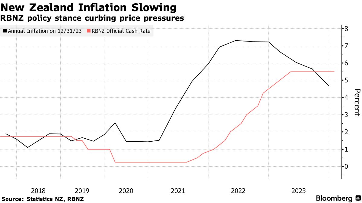 国际货币基金组织的观点与新西兰储备银行的观点形成对比,后者上个月表示,尽管通货膨胀放缓,官方现金利率可能在2025年之前保持在5.5%。不过,大多数经济学家预计降息将在第四季度开始,投资者预计到年底将有两次25个基点的降息。