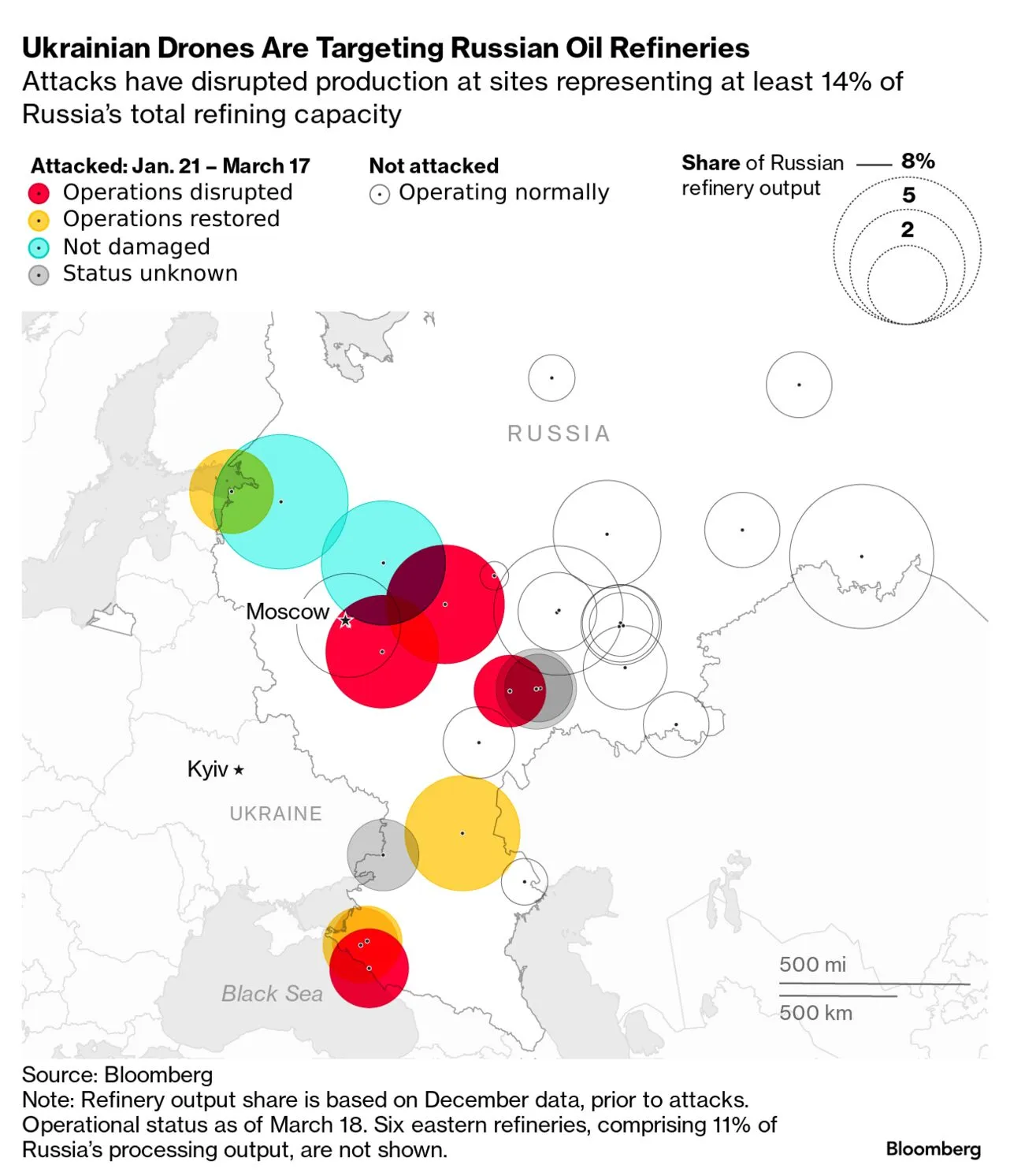 - 至少九个主要炼油厂今年已成功遭到攻击,关闭了该国11%的总产能。