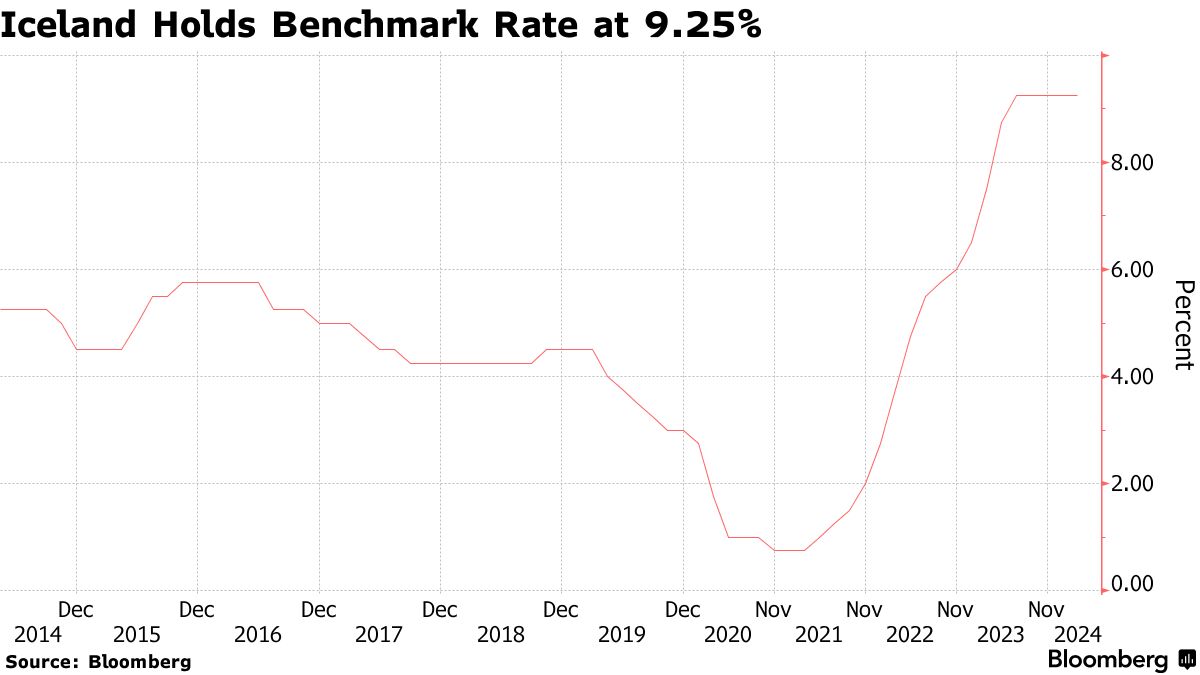 冰岛将西欧最高利率维持在9.25% - 彭博社
