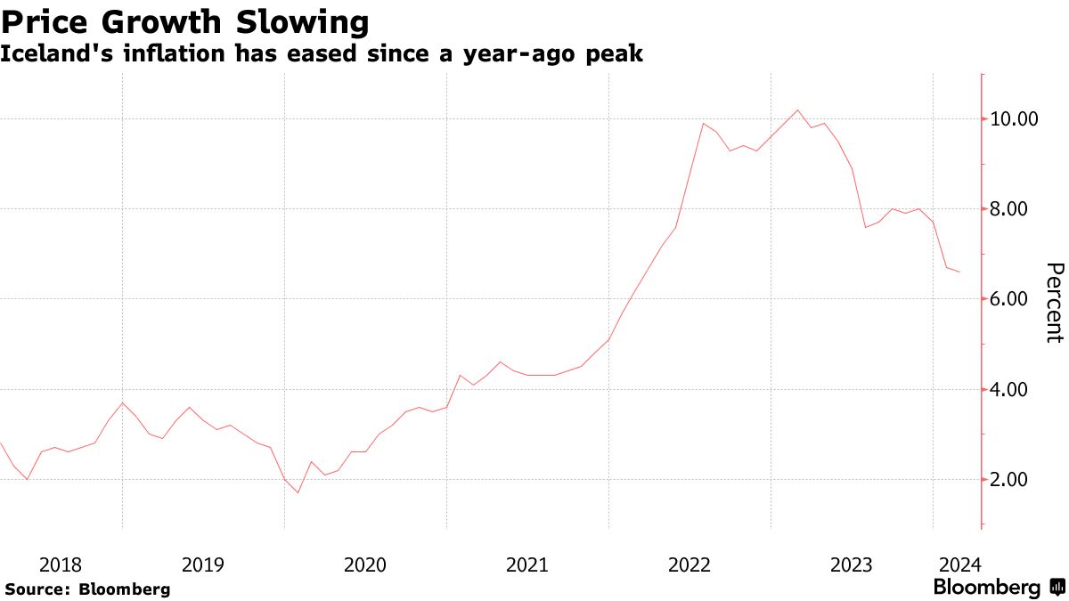 这次利率决定是自政府在二月份达成协议以来的第一次,协议是收购所有居民房产,这些房产位于渔业小镇Grindavik,由于最近几个月火山喷发震动了该地区,已经变得无法居住。人们担心对受灾居民提供的财政支持可能会导致价格进一步上涨,尽管政府辩称收购不会改变冰岛经济的总体轨迹。