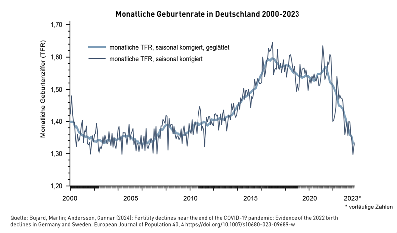 “在这样一个多重危机的时期,许多人并不打算要孩子,”BIB研究员、该研究的合著者马丁·布亚德说。“除了大流行病外,乌克兰战争、通货膨胀上升和气候变化加剧也增加了人们的不确定感。”