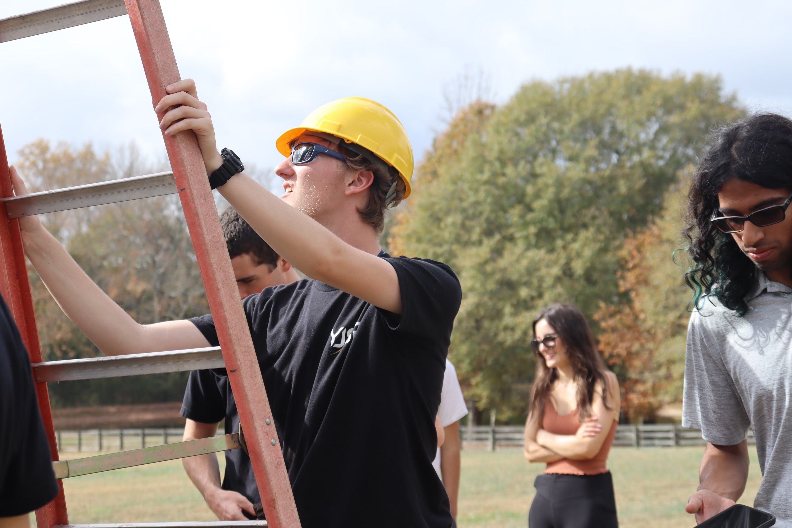 威廉·普坦苏,戴着黄色安全帽,在乔治亚理工学院的格里芬黄蜂太空计划中为火箭工作。由William Putaansuu提供学生们表示,他们知道私人太空公司的要求可能会对心理和身体健康造成影响。这经常促使工作人员重新审视更为成熟的太空运营。