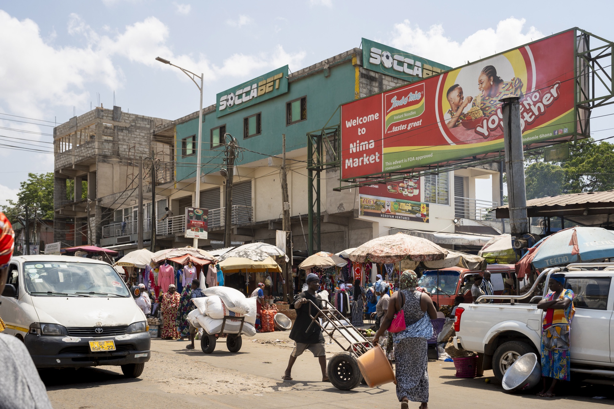 在加纳阿克拉的尼玛市场的交易员。摄影师:厄内斯特·安科马/彭博社