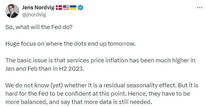 相反,焦点将放在经济预测摘要(SEP)上——这是美联储董事会成员和地区银行行长预测的季度更新。 直接的问题是中位数估计是否显示官员们预计今年会有三次降息,正如他们在12月所做的,还是仅仅收紧到两次。