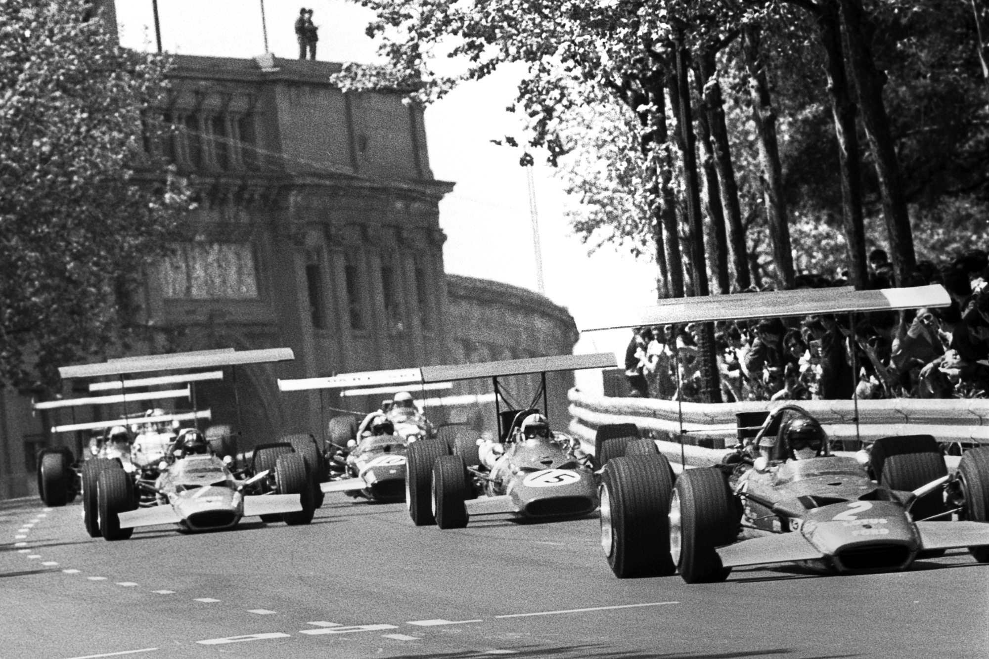 这里是1969年的巴塞罗那蒙特惠奇赛道,以其危险的弯道而闻名。摄影师:伯纳德·卡希尔/赫尔顿档案馆无论过去还是现在,安全一直是一个问题。在20世纪60年代末和70年代初,一些著名的市区赛道因既刺激又危险而闻名。巴塞罗那的蒙特惠奇赛道,西班牙大奖赛的主场,于1975年德国车手罗尔夫·斯托梅伦的赛车飞入观众席,造成五名观众死亡后被从F1赛程中删除。