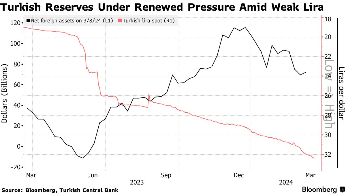 土耳其里拉是彭博跟踪的新兴市场货币中本月表现最差的,对美元贬值约3.6%。随着地方选举临近,更大的担忧是重演去年总统选举后的暴跌,当时它在一天内跌幅高达7%。