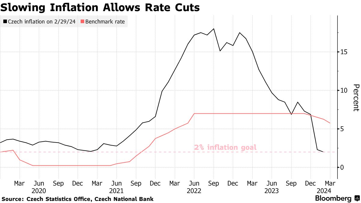 捷克人在半个百分点的降息之后对价格风险表示谨慎 - 彭博社