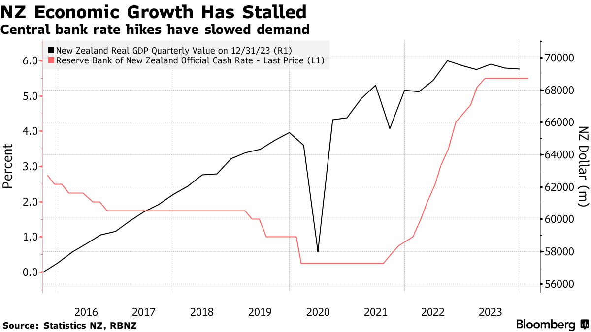 新西兰经济在第四季度意外收缩后陷入衰退 - 彭博社