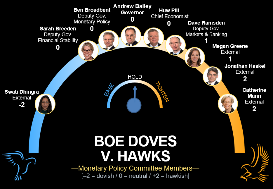 货币政策委员会可能会再次出现三分裂,但英格兰银行的两名鹰派中的一人可能会放弃,并从支持加息转为维持政策不变。