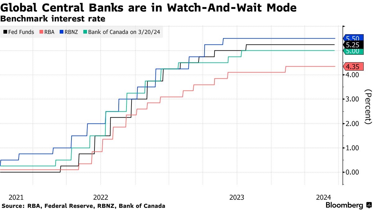 强劲的就业数据与从企业和消费者调查到职位空缺和零售销售等各种指标形成鲜明对比,这些指标表明经济正在放缓。RBA本周在将关键利率维持在4.35%的12年高位后,放弃了加息倾向,以期了解经济走势的清晰度。