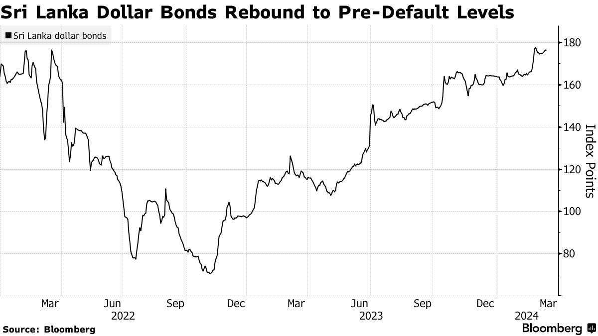 投资者对斯里兰卡前景持乐观态度,该国货币接近自6月以来的最强水平,而美元债券今年上涨约9%,是亚洲表现最佳之一。