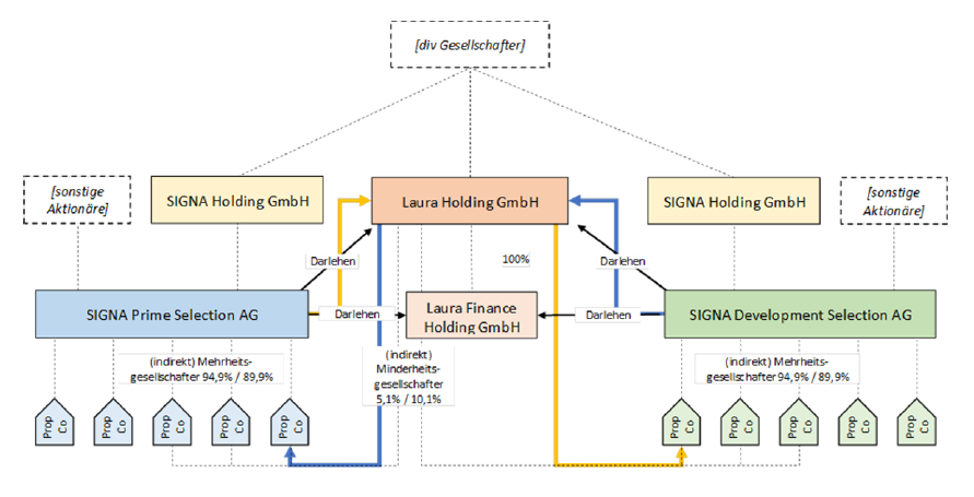 管理员发现,贷款接收方包括姐妹公司Signa Prime(1.02亿欧元)、主要股东Signa Holding通过一家中间公司(2.41亿欧元),以及由Signa Holding股东控制的两家名为Laura Holding GmbH和Laura Finance Holding GmbH的实体(总计3.22亿欧元)。