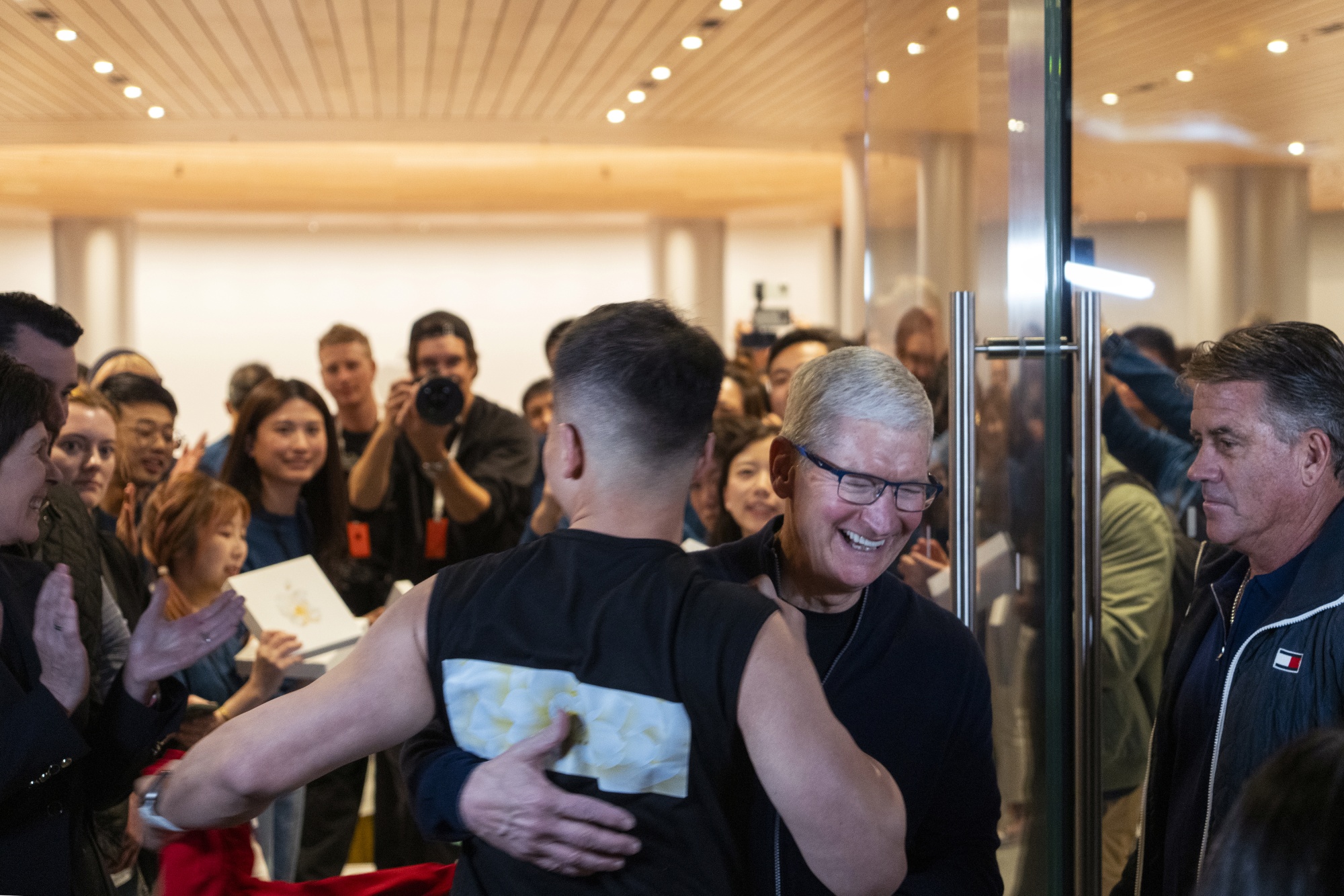 首席执行官在与当地名人共度时光、品尝上海美食以及与比亚迪股份有限公司和蓝思科技有限公司等供应商负责人交谈后,主持了苹果在该市的第八家门店的开业。