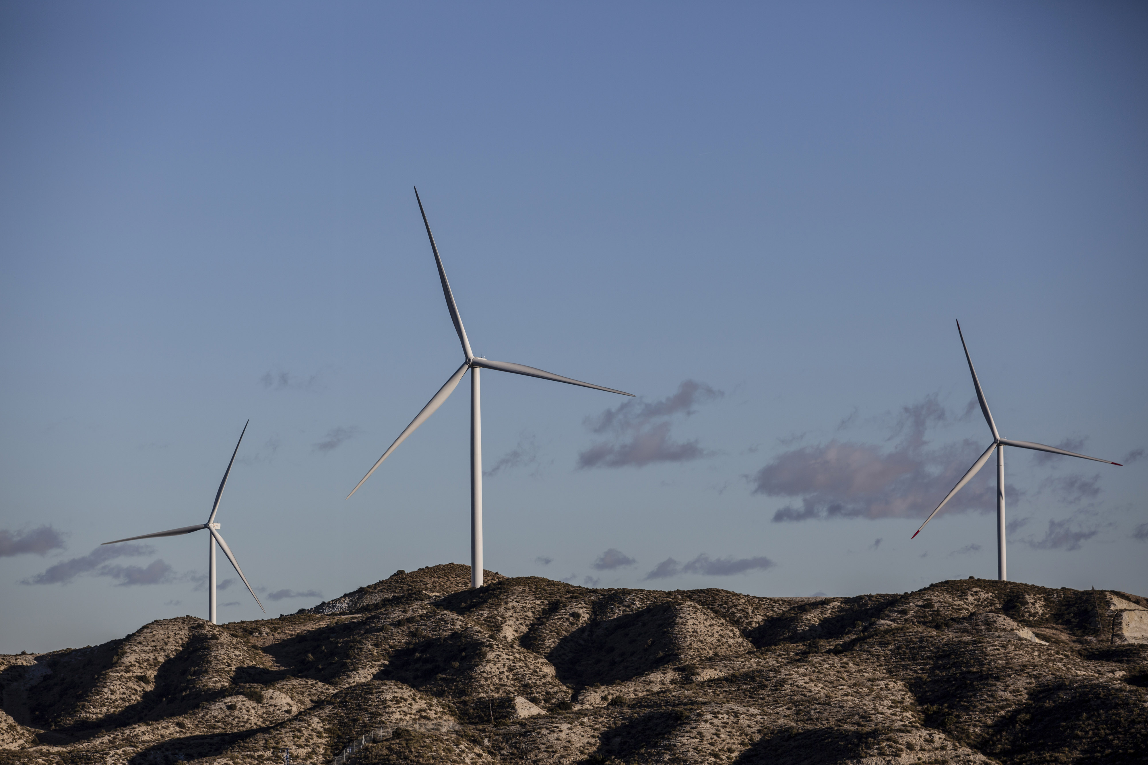 西班牙萨拉戈萨的雷普索SA Delta风电场的风力涡轮机。