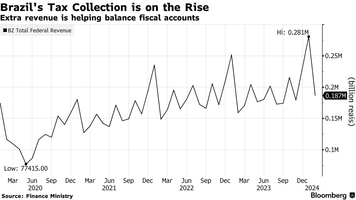 去年市场对哈达德计划通过新收入将主要赤字(不包括利息支付)归零表示 极度怀疑。但前景的改善是由他在这方面的成功推动的:根据财政部周四发布的数据,巴西2月税收达到1865亿雷亚尔(375亿美元) — 创下了该月的纪录,比一年前增加了近300亿雷亚尔。