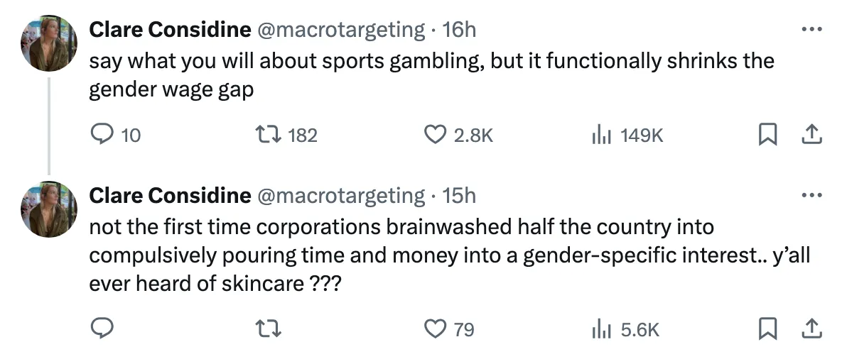 彭博社观点纽约市的反老鼠运动从未如此正常巴菲特的股票出售伴随着一些不好的氛围奇怪的生牛奶趋势让孩子们面临风险最古老的奥林匹克运动员可能掌握着减缓衰老的关键无论这个故事接下来如何发展,你都得承认,在三月疯狂的前夕爆出一起非法体育赌博丑闻,实在是有点过分。当然,既然这是互联网,人们 正在猜测 关于 大谷翔平 — 或他的翻译 — 是否填写了 一个赛程。这真是太可笑了。至少这次女性们终于可以笑到最后: