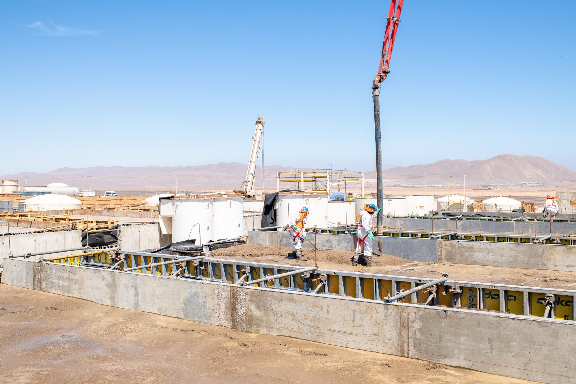 安托法加斯塔SQM锂电池工厂扩建现场的工人。摄影师:Cristobal Olivares/Bloomberg