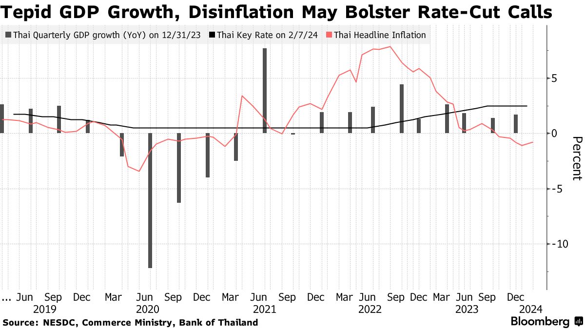 包括渣打银行和暹罗商业银行在内的经济学家们正在预计4月份会降息,而10年期债券收益率也在定价泰国转向货币宽松政策,此前曾进行了一年的紧缩行动以遏制通胀。央行迄今一直抵制反复呼吁放宽政策设置。