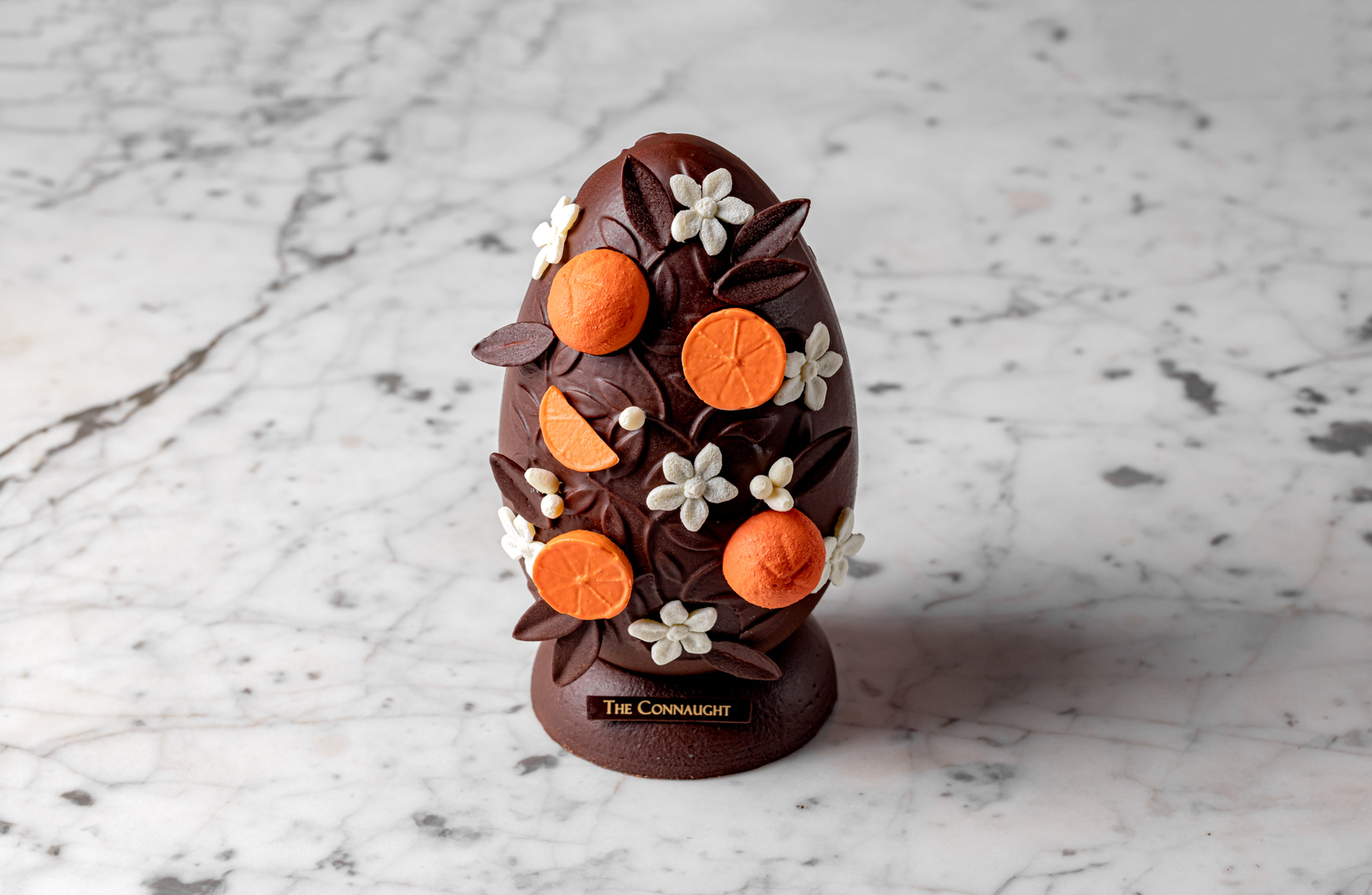 康诺特糕点店的主厨尼古拉斯·鲁佐德说,这款设计的灵感来自今年较早的假期。“今年的复活节相当早,”他说。“复活节是橙花的季节,在伦敦到处都是花朵。”