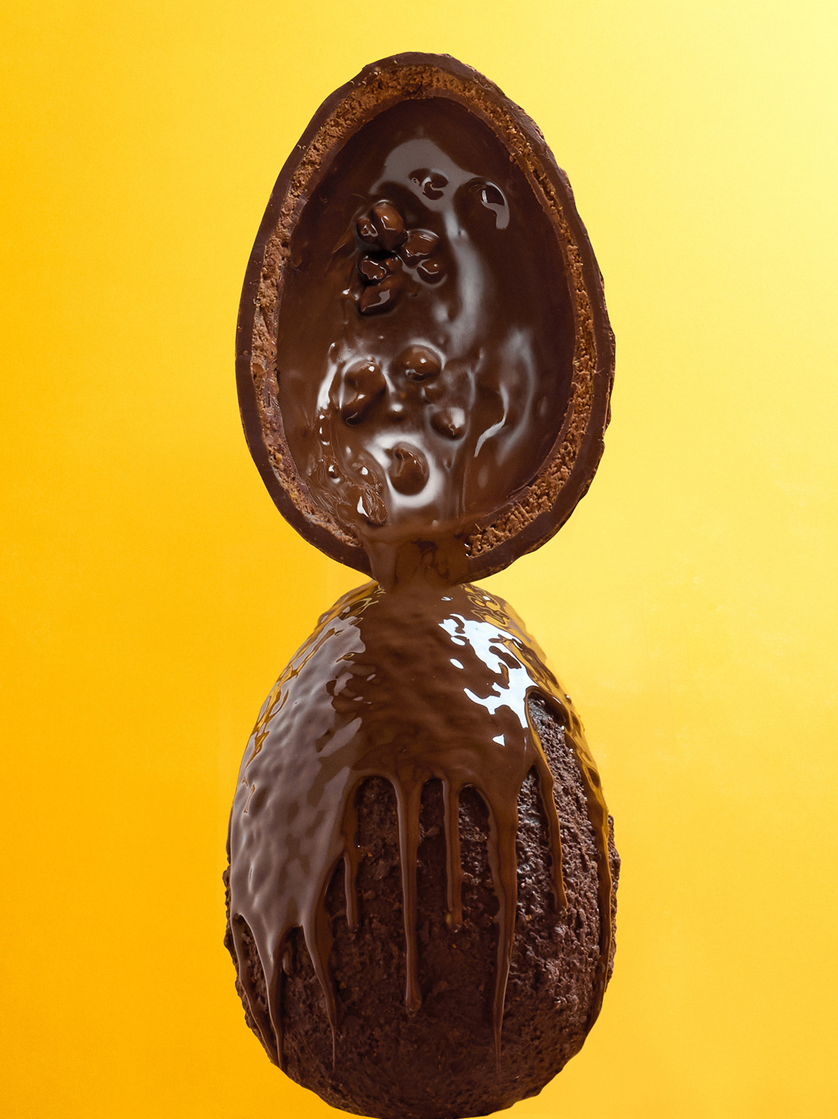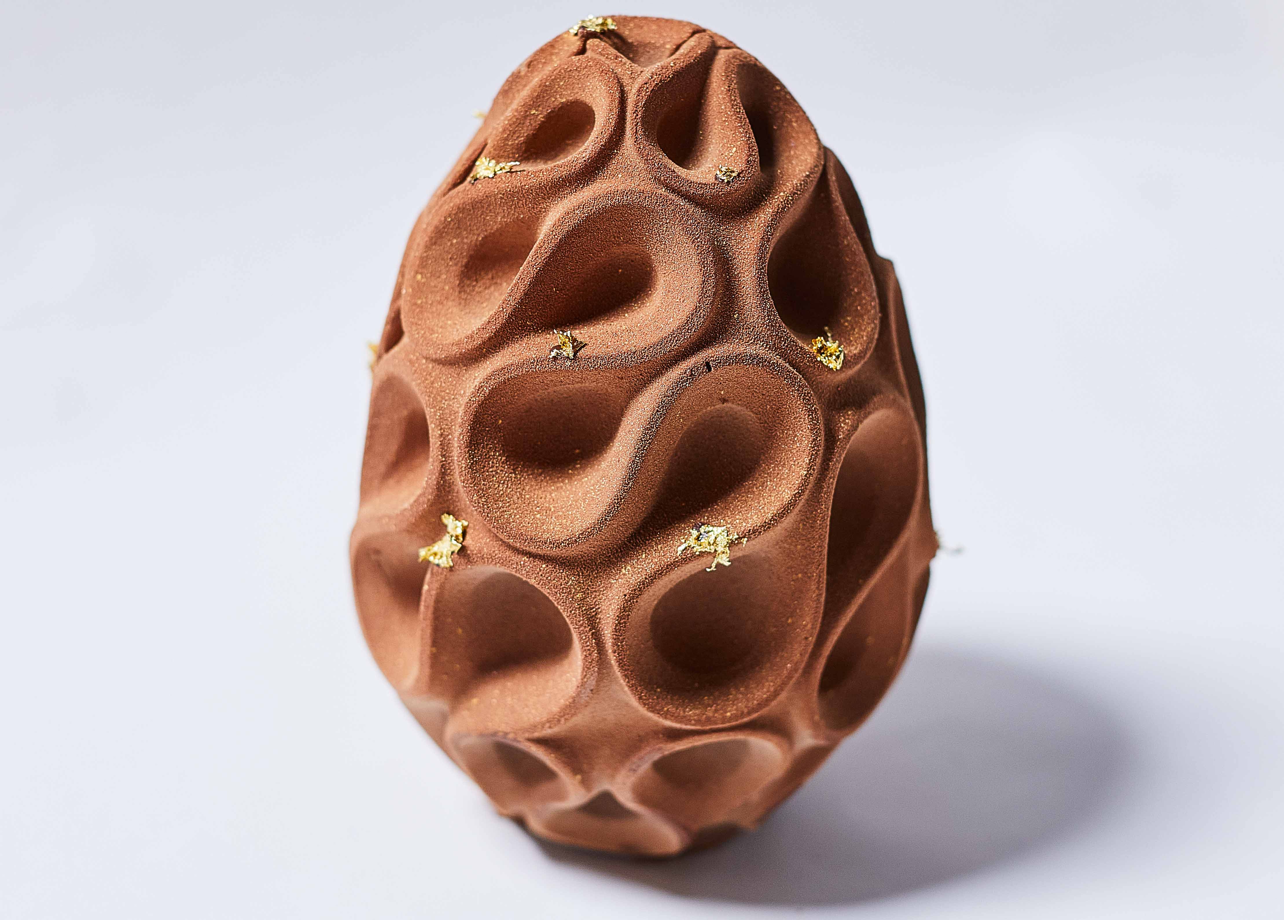 这是圣詹姆斯餐厅Maison François第三次推出复活节蛋。今年的螺旋和成型作品“看起来像一个法贝热蛋”,餐厅老板弗朗索瓦·奥尼尔说。它由70%黑巧克力制成,内含焦糖甘纳许和焦糖爆米花。