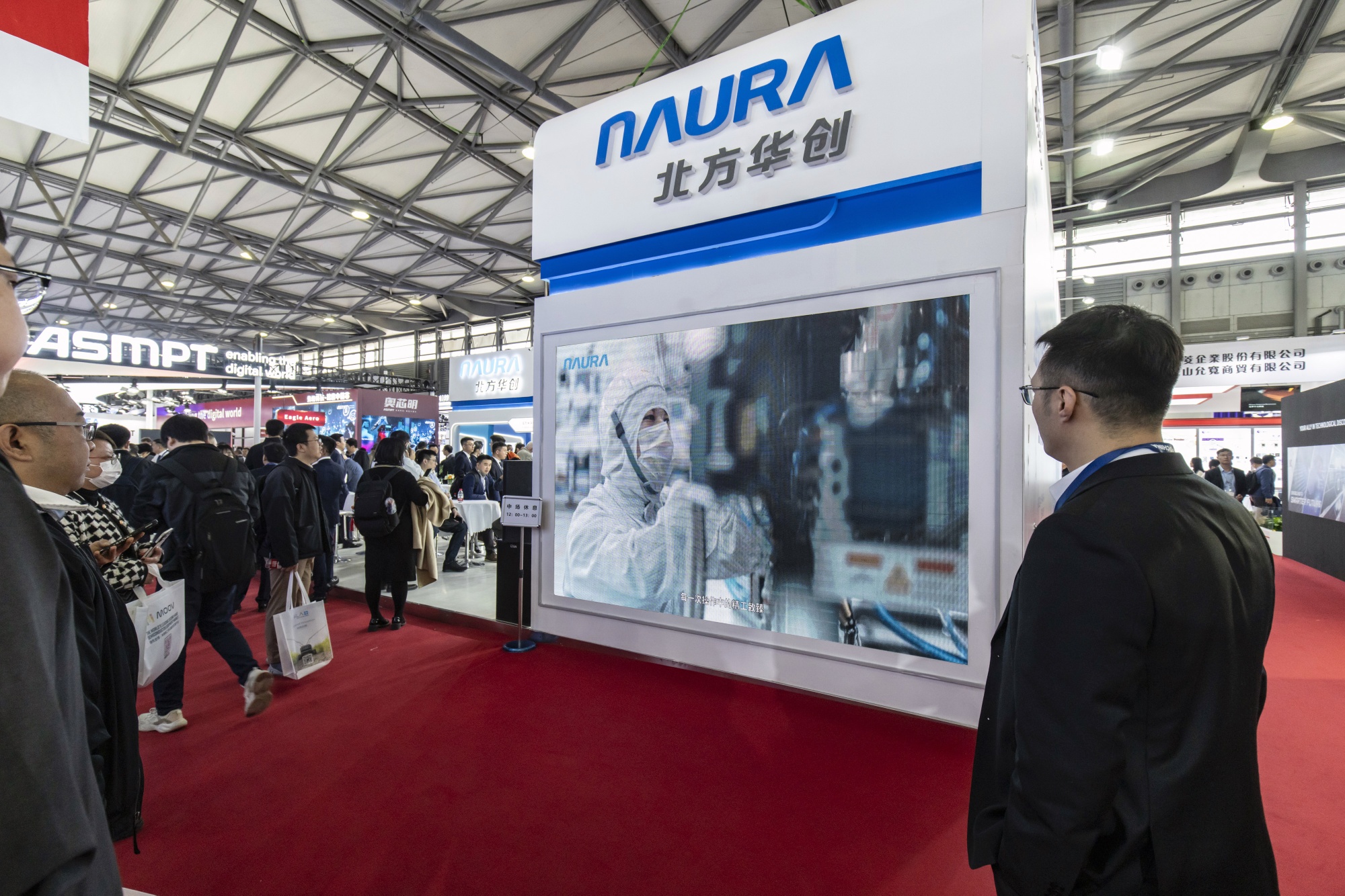 上海半导体中国博览会上的Naura展位。摄影师:沈启来/彭博社今年,北京全力支持国内最重要的芯片制造设备供应商。本月,李强总理访问了 Naura Technology 的办公室,这次访问被广泛报道,通常被安排为示意中央政府的支持。