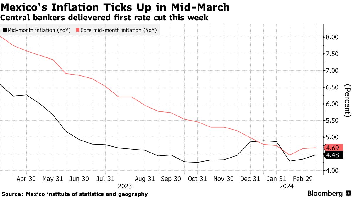 墨西哥本月初的年度通货膨胀率超过了预测,证实了央行在2021年以来首次降息后采取谨慎立场的决定。此次降息是在一次分裂投票中进行的。