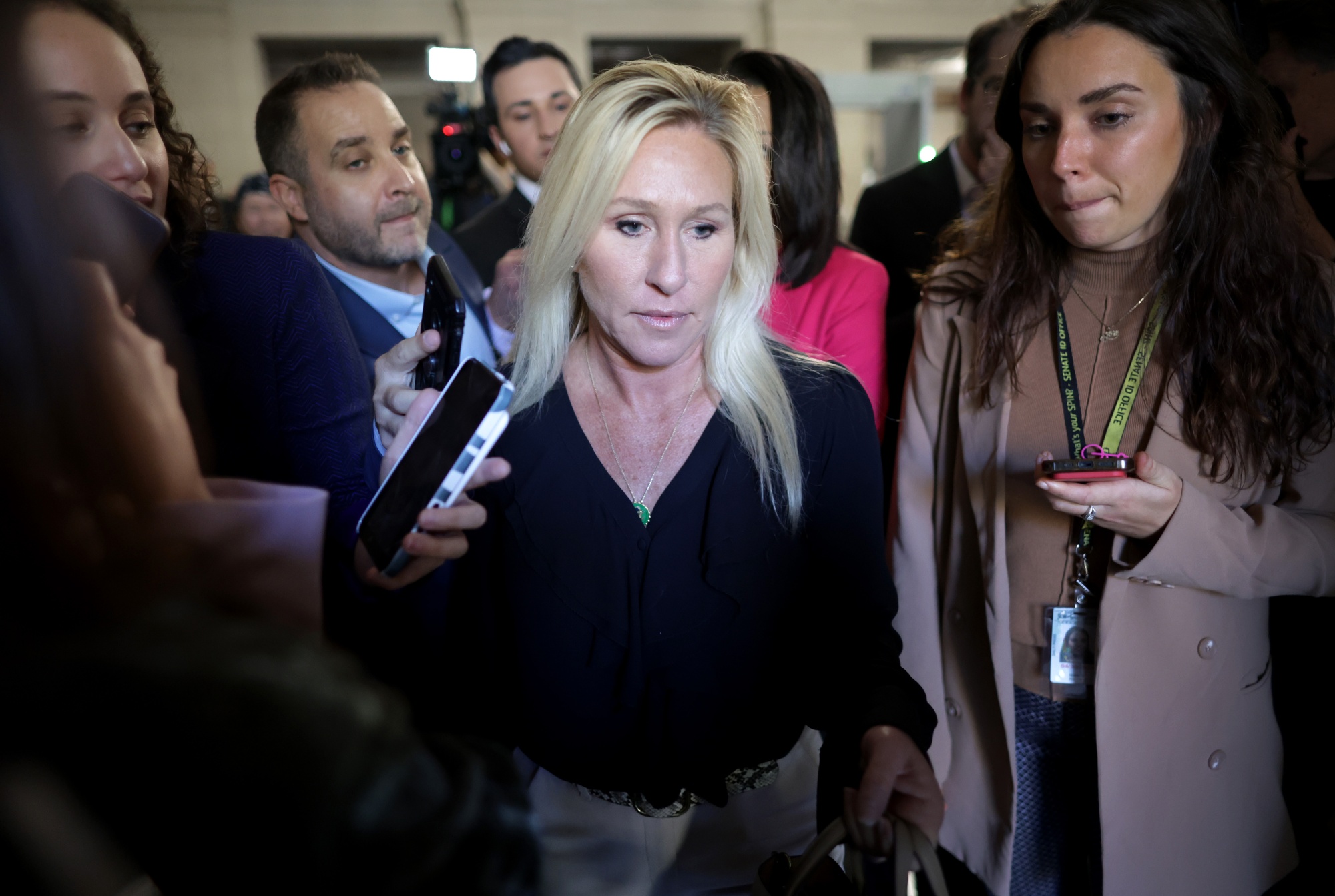 摄影师:亚历克斯·王/盖蒂图片社共和党众议员马乔里·泰勒·格林在周五迈出了第一步,试图罢免众议院议长迈克·约翰逊,这可能引发共和党内部又一轮动荡,并在11月选举前加剧更多内讧。