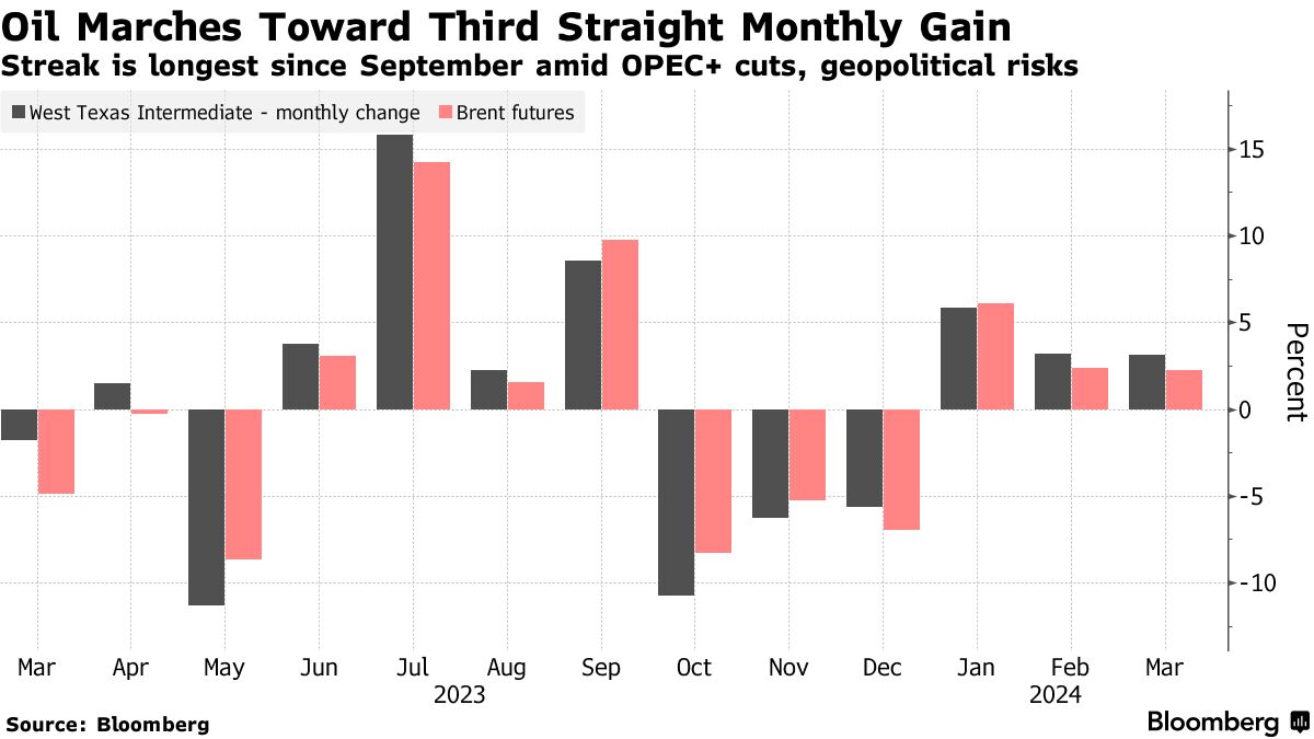 摄影师:Paul Ninson/Bloomberg作为制作巧克力的关键原料,可可继续上涨,在复活节之前创下新纪录。石油有望延续其连续上涨的月度表现,因为需求超过了预期。而铜投资者正在增加对这种工业金属的看涨赌注。