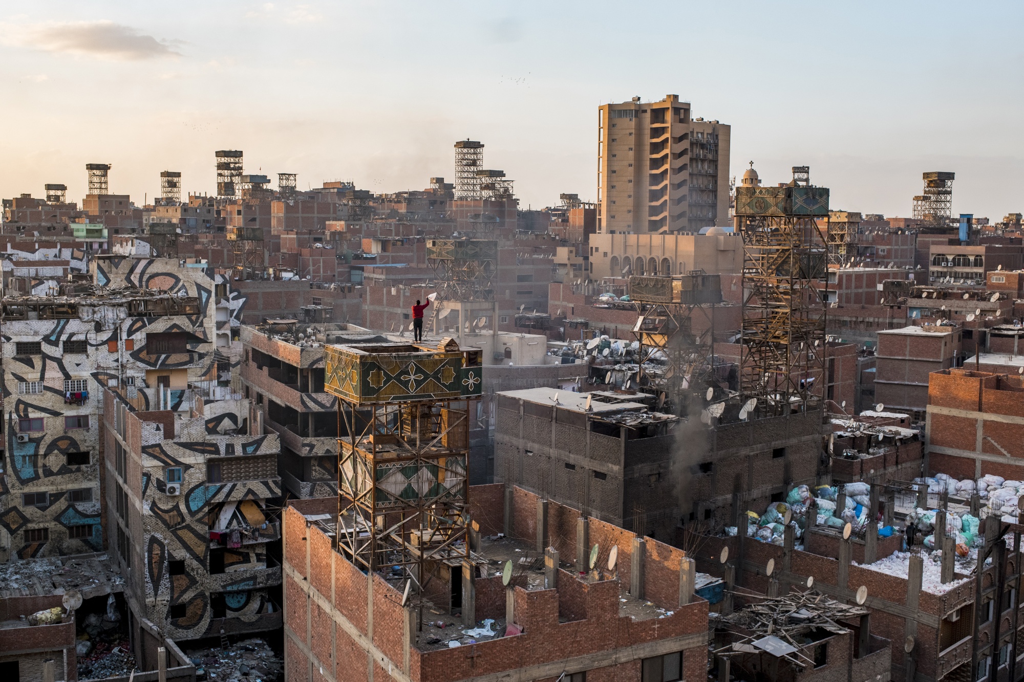 马什亚特·纳瑟尔的屋顶,这个地区以其“垃圾城”而闻名,位于开罗,日期为3月6日。